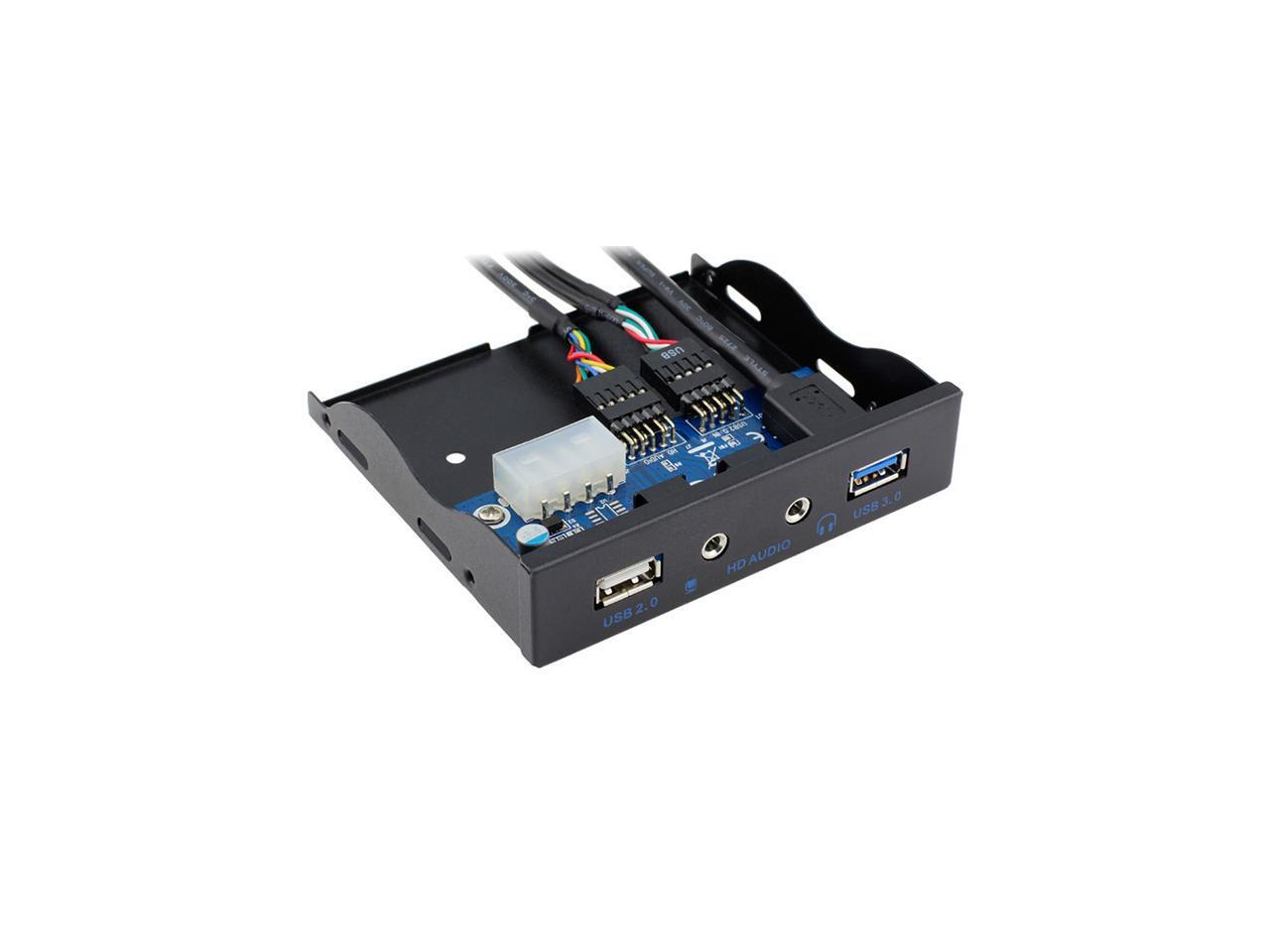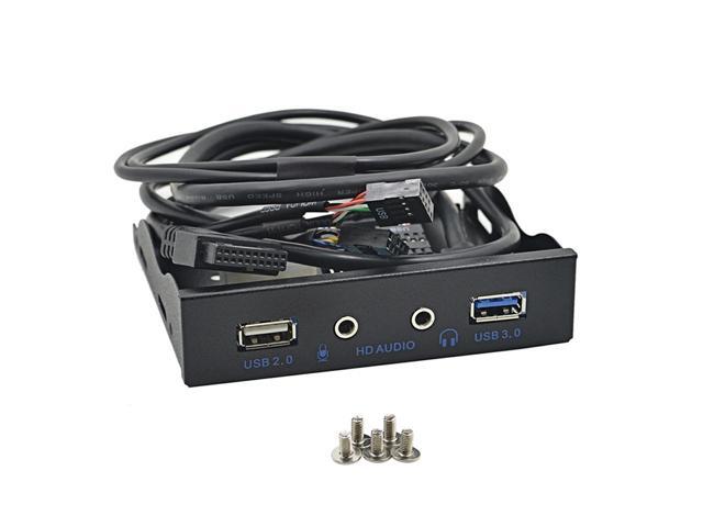 EnLabs FP35U2U3AM 3.5 inch USB Front Panel Audio Microphone, USB 3.0 & USB 2.0 Hub Floppy Panel Adapter HD Stereo Audio Output & Mic input - 2 Feet 9pin, 20pin USB Cable, Black