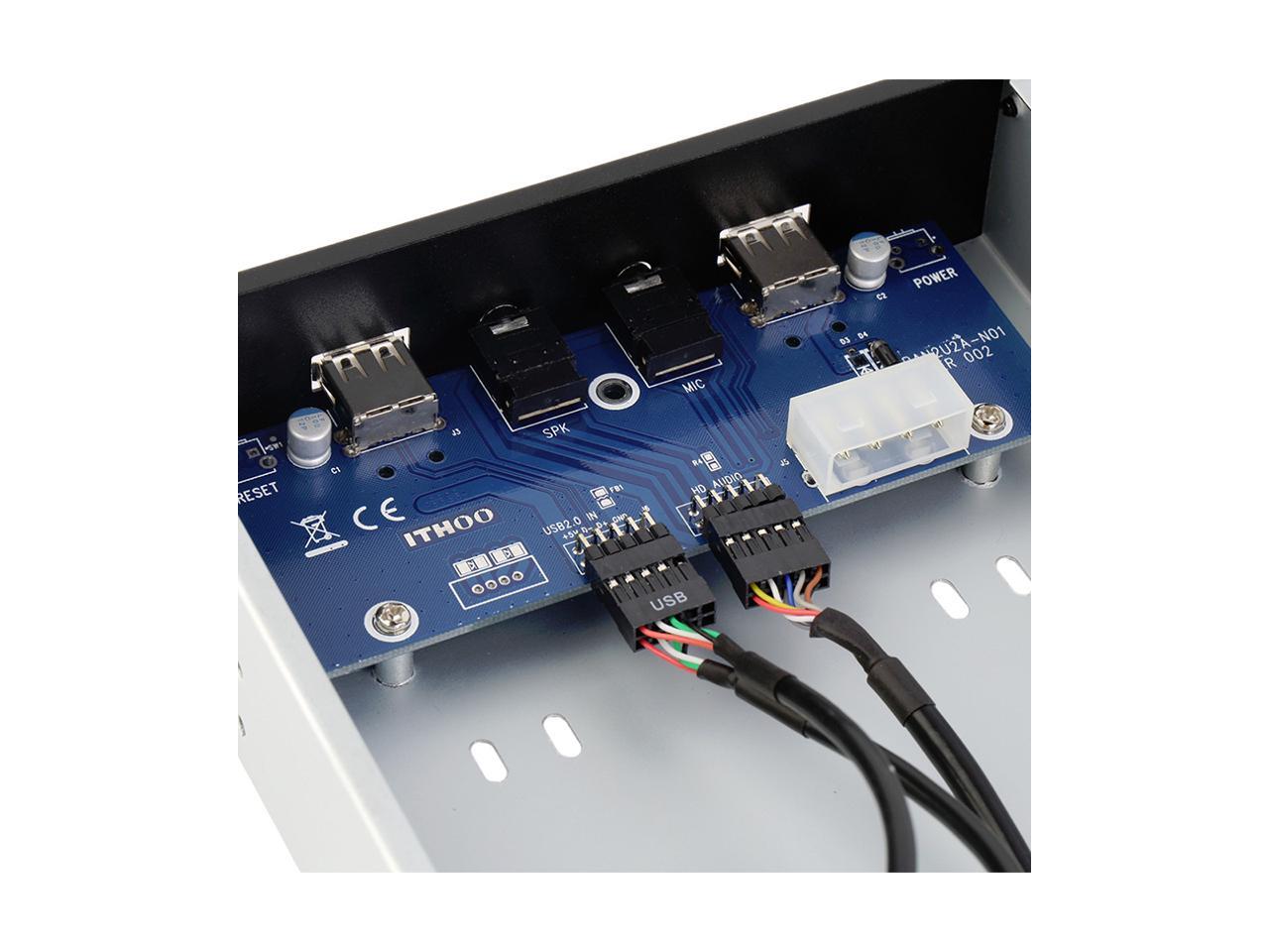 - 5.25 Front-Panel 2 Ports USB 2.0 Hub w/ HD Audio & Mic