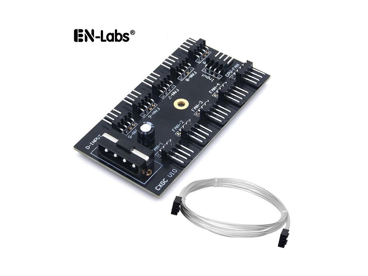 10 Ports PWM Fan Hub Splitter Controller,Molex IDE 4pin to 10 4pins PWM CPU Fan Adapter w/ 1FT Power Cable,Compatible with 3pin Case Fan