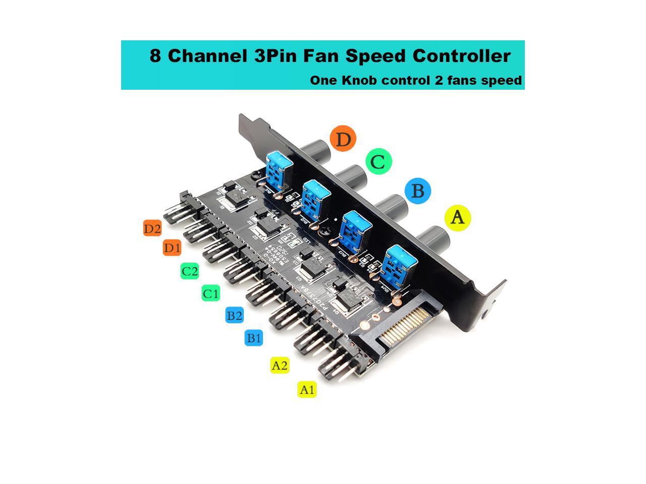 Enlabs PCIFANCO8SPR 8 Channel 3-pin 4pin Fan speed Controller w/ OFF Switch - 8 Fans RPM Speed Reduce Regulator by 4 Knobs w/ PCI Slot Cover - SATA 15pin to 8 Port 3 4Pin Case/CPU Fan Hub Splitter