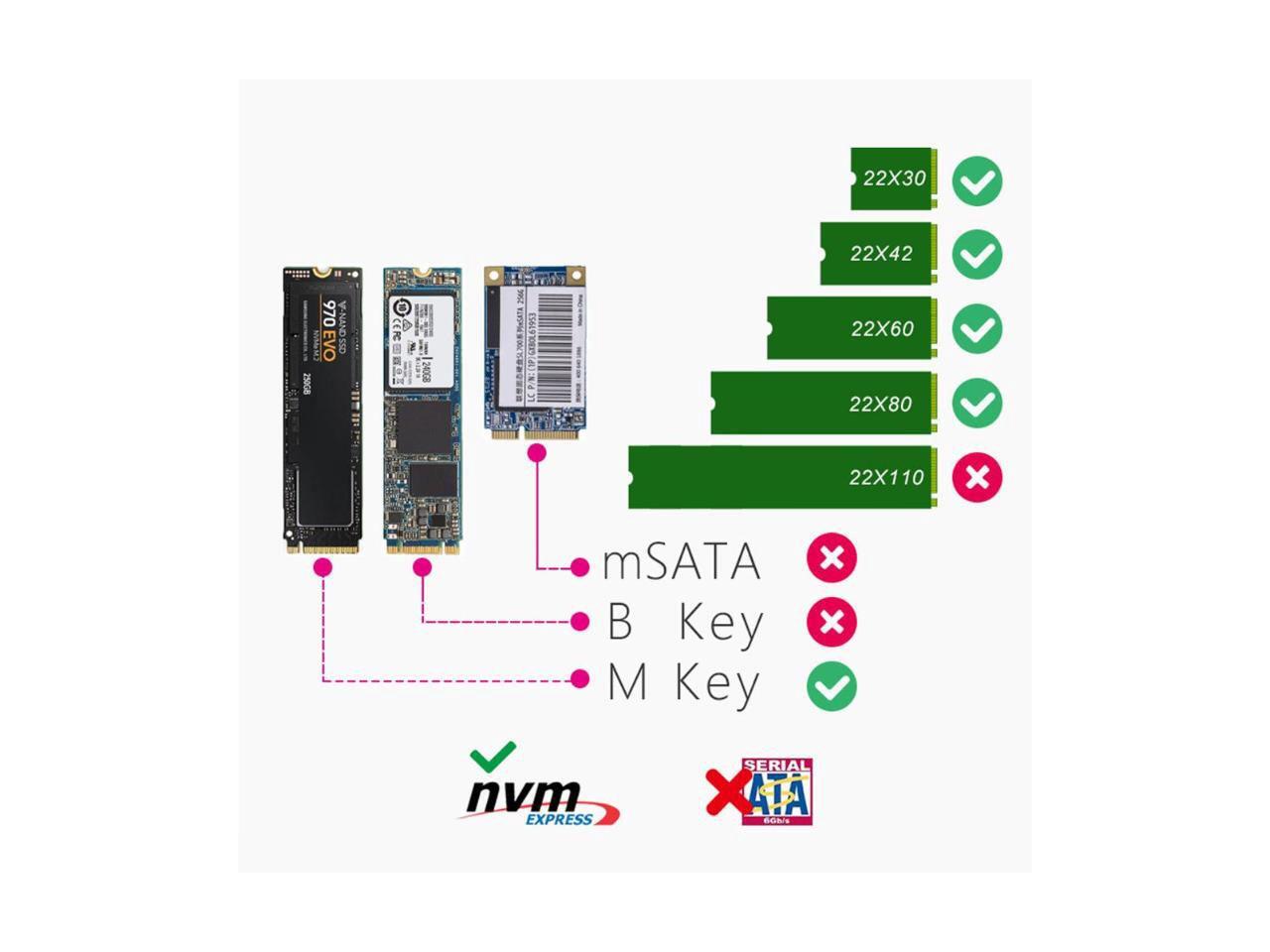- USB-C to NVMe M.2 SSD enclosure for 2280/2260/2242/2230 M.2 SSD