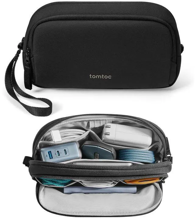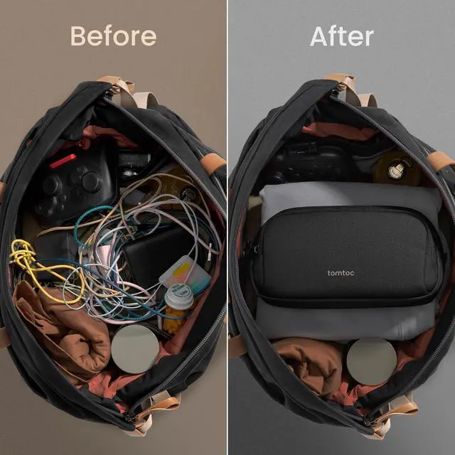 Convenient & Portable: Designed for portability, the tomtoc tech and travel pouch keep your essentials organized and within reach, fitting seamlessly into a backpack, tote, or handbag, and can stand upright on a desk to grab items easily