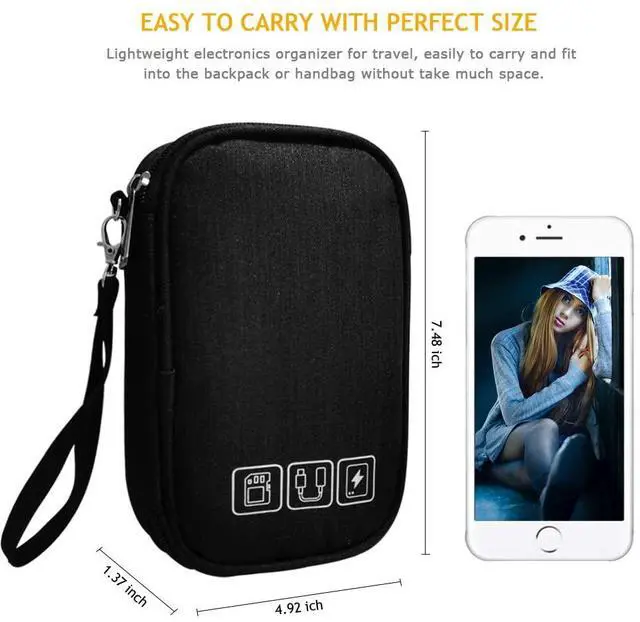 Electronic Organizer Bag Cable Organizer Travel Cord Organizer Case Pouch Portable Carrying Case for Charger Hard Drive Earphone USB SD Card (Black)