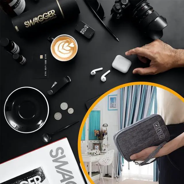 HIGH QUALITY MATERIAL - The electronics bag is made of durable soft well-padded water repellent nylon and lined with polyester inside to secure your gadgets in place and deliver a quick access whenever you want. Travel organizer bag with high quality dual zipper closure for quick access and management.