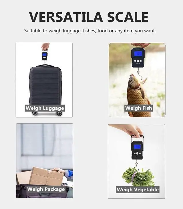 - This handheld luggage can be widely used in traveling, fishing, shopping, sending express or weighing small objects like luggage/fish weight/suitcase/campagin gear/fruits.