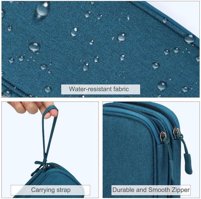 • Dimensions: 7.5" x 4.3" x 2.2". Compact size and lightweight make it easy to carry and put into your backpack, handbags or laptop bag without taking much space. Suitable for family use and daily organization. Note: Small mesh pockets are ideal for charging cords no longer than 3ft; longer cables (over 3ft) fit better in the larger compartments