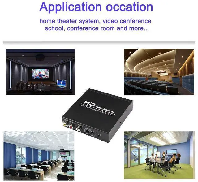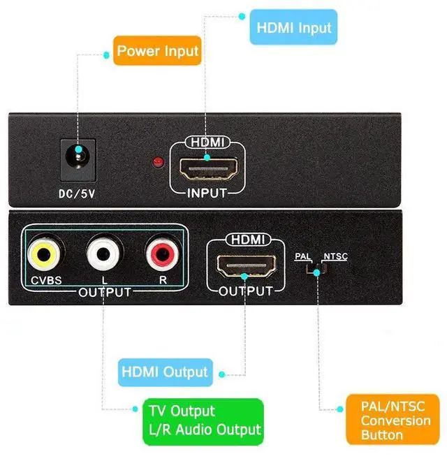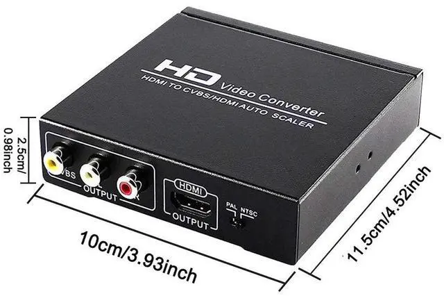 It converts HDMI digital video signal to HDMI and RCA signal(composite video signal and stereo audio signal) at the same time.It helps you convert the high definition HDMI signal into normal CVBS signal (standard-definition 480i, 576i).