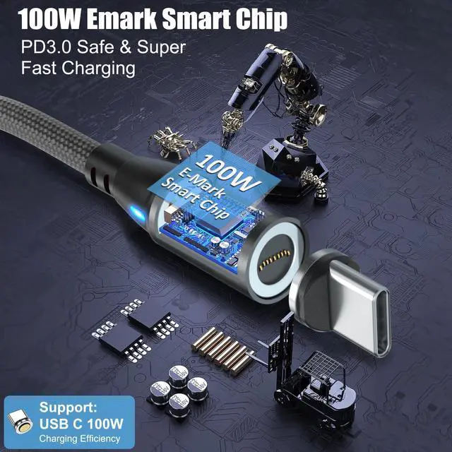 The upgraded magnetic phone charger can 5A fast charging and data transmission function with a speed of up to 480Mbps.