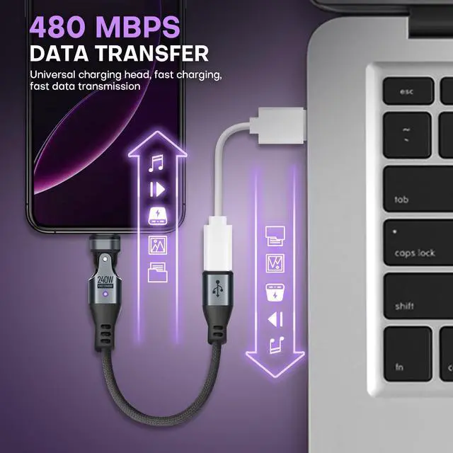 EndlesShine USB C to C Magnetic Adapter USB2.0 16PIN 480MBPS PD 240W