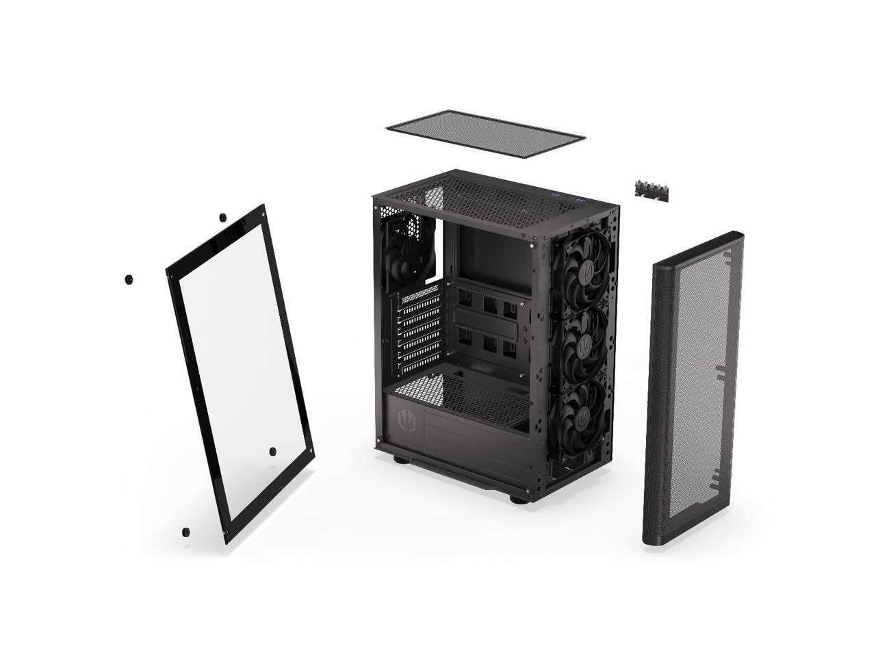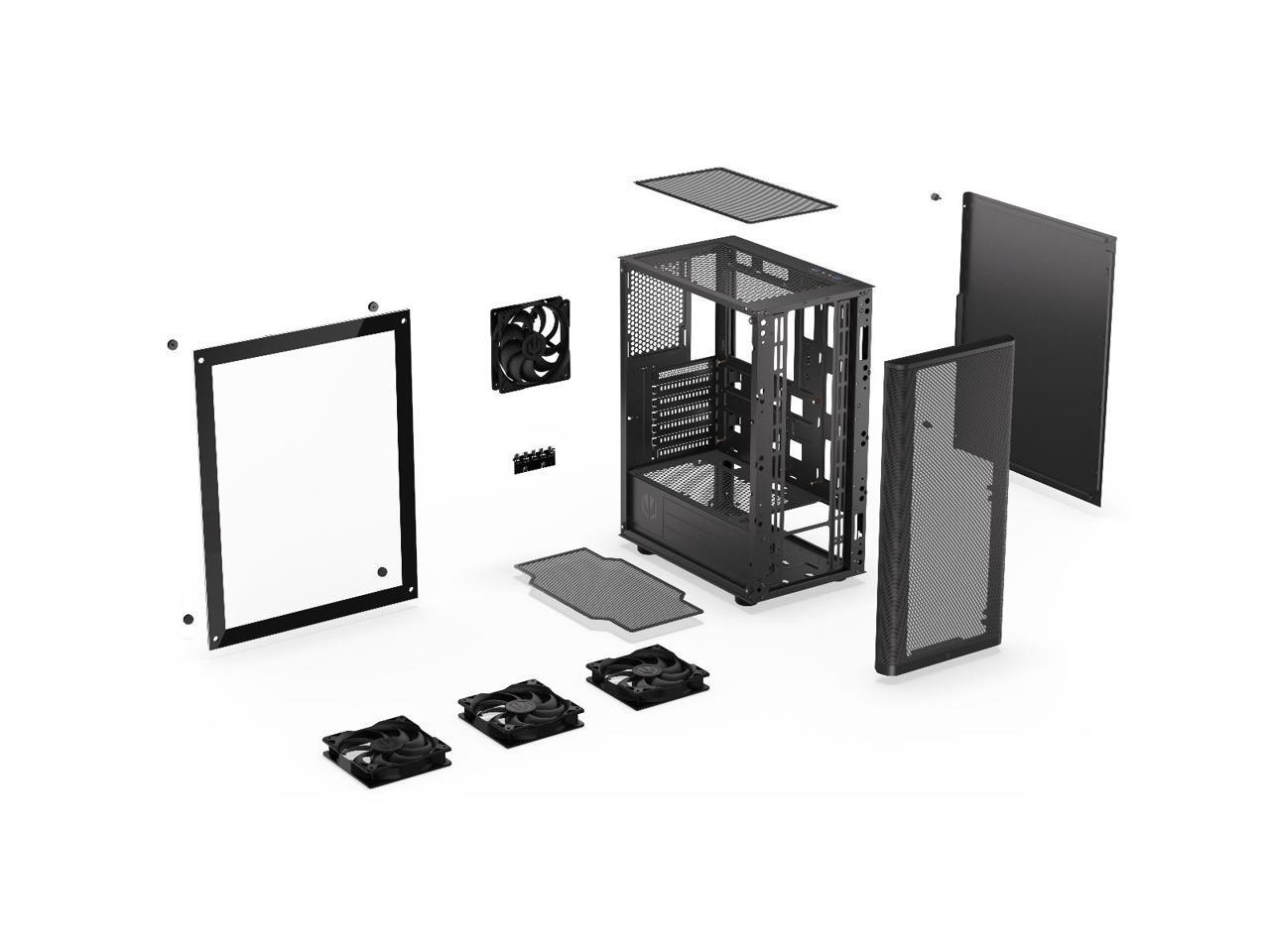- Sleek Tempered Glass Design: Featuring tempered glass side, top, and front mesh panels, this case offers a modern and stylish look while showcasing your build.