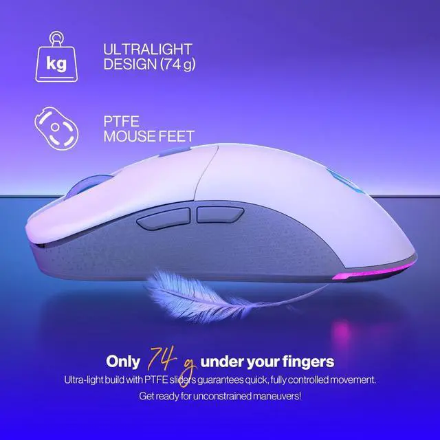 Ultra-light build with profiled PTFE sliders guarantees quick and unconstrained movement for gaming proficiency.