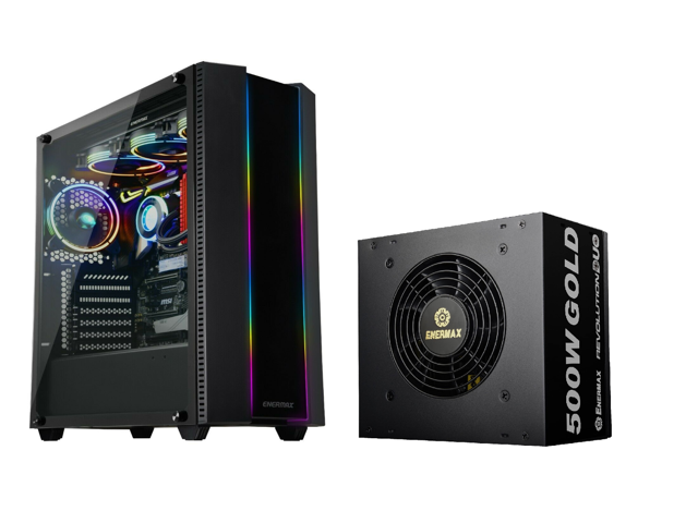 Enermax Makashi MK50 II Addressable RGB Tempered Glass E-ATX Full Tower PC Gaming Case with ENERMAX Revolution DUO 500W 80 Plus Gold 500W, Non Modular, Single Rail, Power Supply [Bundle]