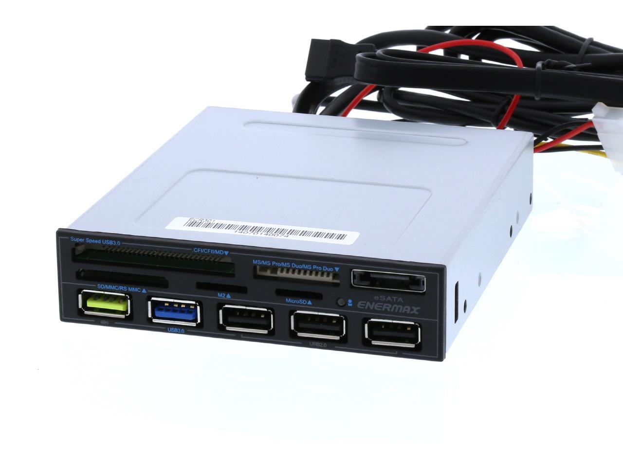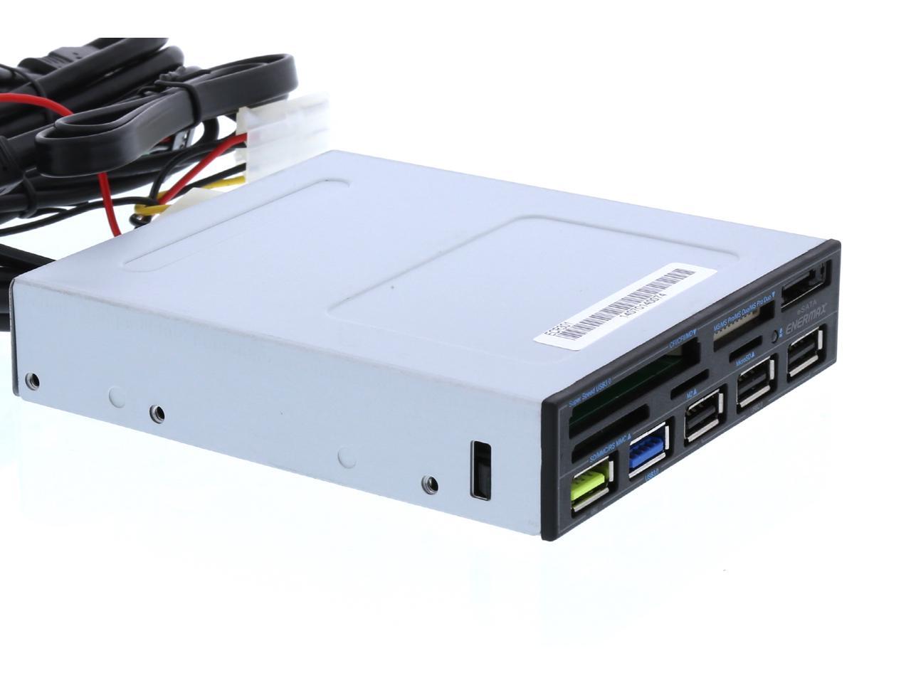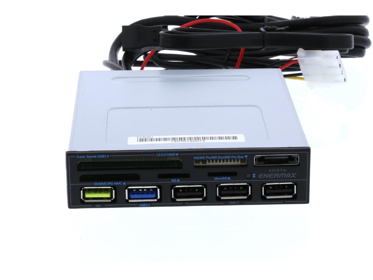 Enermax ECR301 internal card reader w/ Super Charge USB Port (2.4v), USB 3.0 x1. 5-in-1 card readers: CF I/II/MD, Micro SD, SD/SDHC/SDXC/MMC/RSMMC, MS/MS PRO/MS PRO DUO, M2(MS MICRO)