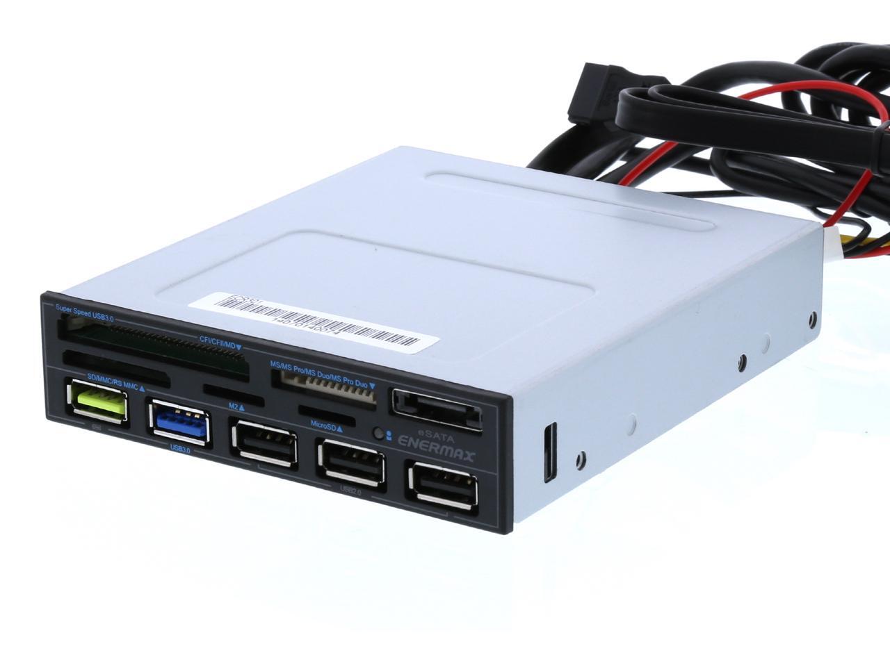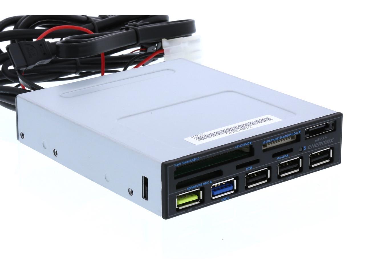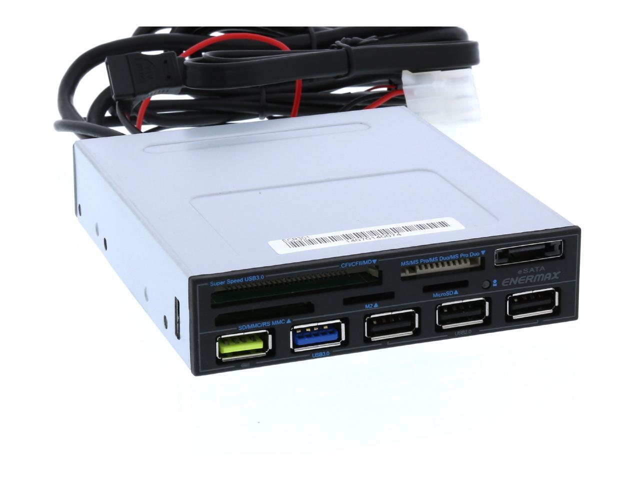 Enermax ECR301 internal card reader w/ Super Charge USB Port (2.4v), USB 3.0 x1. 5-in-1 card readers: CF I/II/MD, Micro SD, SD/SDHC/SDXC/MMC/RSMMC, MS/MS PRO/MS PRO DUO, M2(MS MICRO)