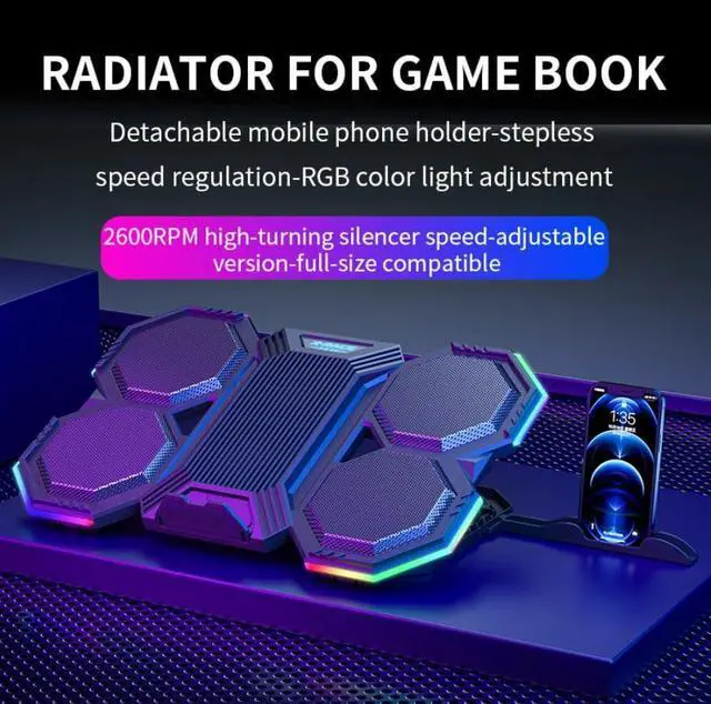 Laptop Cooling Pad RGB Cooler Laptop Stand with 6 Quiet Cooling Fans 6 Height Adjustable Cooling Pad for Laptop 11-17inch