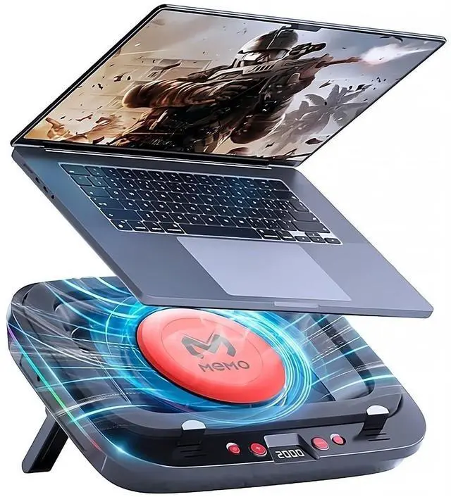 Unleash Peak Performance with our Compressed Air Laptop Cooling Pad Say goodbye to overheating and hello to seamless gaming with advanced compressed air cooling. Perfect for gamers, streamers, and power users looking to elevate performance. Revolutionary Cooling Technology Featuring a powerful turbofan that reaches up to 2,420 RPM, this cooling pad uses an airtight pressure chamber to drop laptop temperatures by up to 20°C. Say goodbye to overheating and performance drops. Customizable Cooling & Ergonomics Take control with an HD LCD display for adjustable fan speeds and precise cooling. Enjoy long gaming or work sessions with 7 height levels for an ergonomic setup. Clean Airflow, Protected Performance The ultra-fine, washable dust filter ensures optimal airflow while protecting your laptop from harmful debris. Maintain peak cooling efficiency for years to come. Sleek RGB Lighting Dynamic RGB lighting enhances your gaming atmosphere with customizable modes and vibrant colors, adding style to every session. Universal Compatibility Designed to fit laptops from 14 to 18, the MEMO FL08 provides stable, efficient cooling for all devices, regardless of size.
