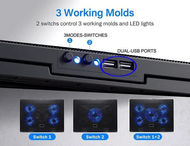FAST COOL DOWN BY 40-50F For Gaming heavy laptop 14-17inch with strong air movement (built-in 5fans - big fan/5.9inch + 4fans small/2.76inch)