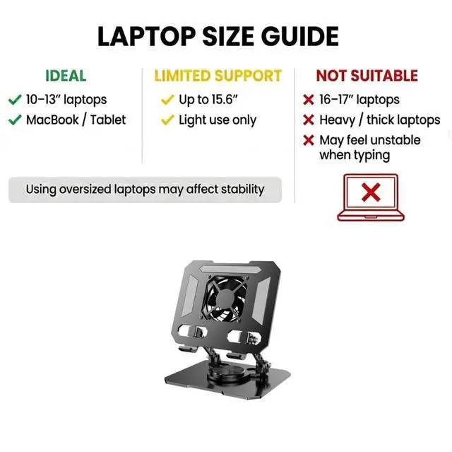 A powerful single turbo fan improves air circulation to keep your laptop cooler and running smoothly.