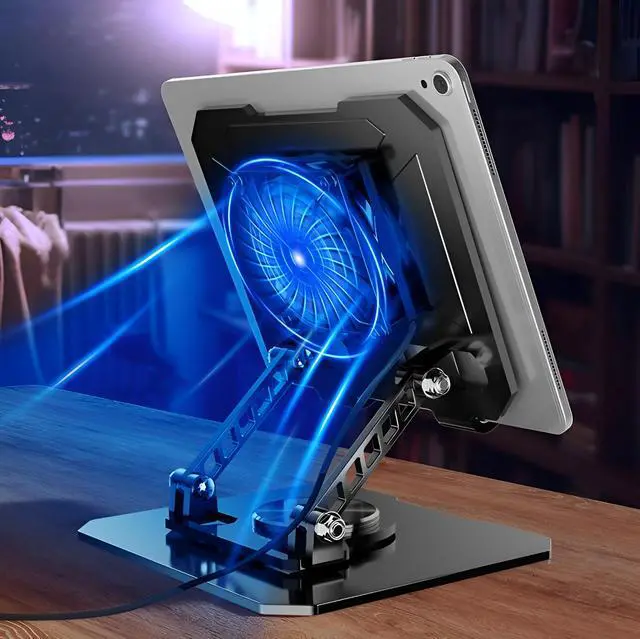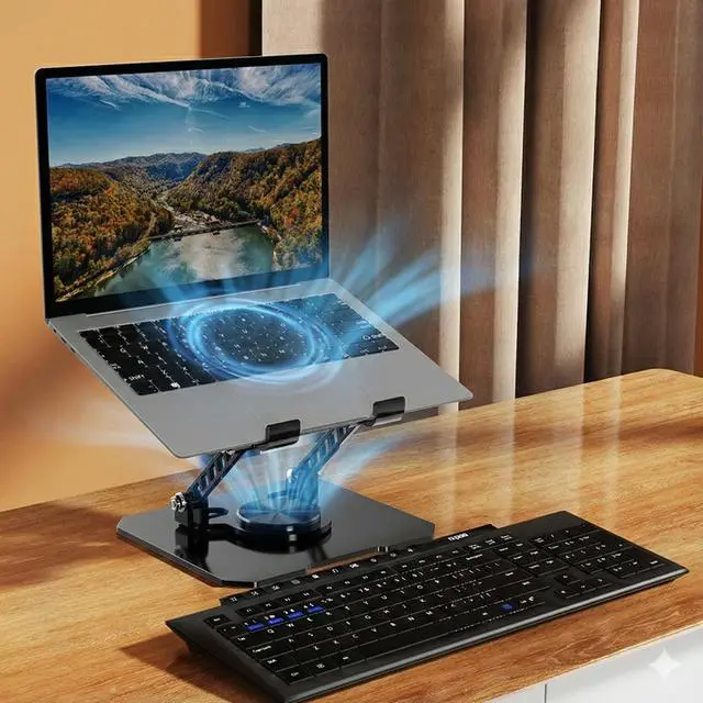 Flexible height adjustment and a 360° rotating base provide stable support and space-saving convenience.