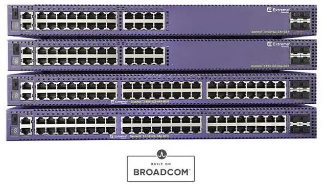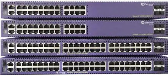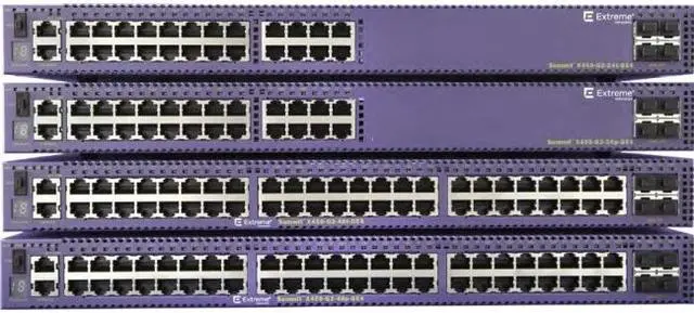 The Summit® X450-G2 series is based on Extreme Networks® revolutionary ExtremeXOS®, a highly resilient OS that provides continuous uptime, manageability and operational efficiency. Each switch offers the same high-performance, nonblocking hardware technology, in the Extreme Networks tradition of simplifying network deployments through the use of common hardware and software throughout the network. The Summit X450-G2 switches are effective campus edge switches with IEEE 802.3at PoE-plus. The Summit X450-G2 series is also an option for DSLAM or CMTS aggregation, or for active Ethernet access. Comprehensive Security Management Role-based policy and host integrity enforcement, and identity management Universal Port Dynamic Security Profiles to provide fine granular security policies in the network Threat detection and response instrumentation to react to network intrusion with CLEAR-Flow Security Rules Engine Denial of Service (DoS) protection and IP security against man-in-the-middle and DoS attacks to harden the network infrastructure Role-based Policy enables support for policy profiles to secure and provision network resources based upon the role the user or device plays within the network. Flexible Port Configuration All models come equipped with either 4 ports of SFP+ 10 GbE or 4 ports of SFP 1GbE resident on the faceplate of each model. Product Type: Ethernet Switch Power Source: Power Supply Layer Supported: 3 Product Type: Ethernet Switch Manufacturer Part Number: 16178 Power Source: Power Supply Limited Warranty: Lifetime Layer Supported: 3 Weight (Approximate): 14.22 lb Form Factor: Rack-mountable Network Technology: 10GBase-X Network Technology: 10/100/1000Base-TX Form Factor: Rack-mountable Manufacturer: Extreme Networks, Inc Product Model: X450-G2-48t-10GE4 Product Name: Summit X450-G2-48t-10GE4 Ethernet Switch Network Technology: 10GBase-X Network Technology: 10/100/1000Base-TX Product Line: Summit Brand Name: Extreme Networks Product Series: X450-G2 Brand Name: Extreme Networks Expansion Slot Type: QSFP Expansion Slot Type: SFP+ Expansion Slot Type: QSFP Expansion Slot Type: SFP+ Height: 1.7 Width: 19.2 Depth: 17.4 Manageable: Yes Ethernet Technology: 10 Gigabit Ethernet Ethernet Technology: Gigabit Ethernet Number of Total Expansion Slots: 6 Product Family: Summit X450-G2 Media Type Supported: Optical Fiber Media Type Supported: Twisted Pair Total Number of Network Ports: 48 Port/Expansion Slot Details: 10 Gigabit Ethernet Port/Expansion Slot Details: Gigabit Ethernet Manageable: Yes Compatible Rack Unit: 1U Ethernet Technology: 10 Gigabit Ethernet Ethernet Technology: Gigabit Ethernet Number of Total Expansion Slots: 6 Number of SFP+ Slots: 4 Media Type Supported: Optical Fiber Media Type Supported: Twisted Pair Total Number of Network Ports: 48 Port/Expansion Slot Details: 4 x 10 Gigabit Ethernet Expansion Slot Port/Expansion Slot Details: 48 x Gigabit Ethernet Network