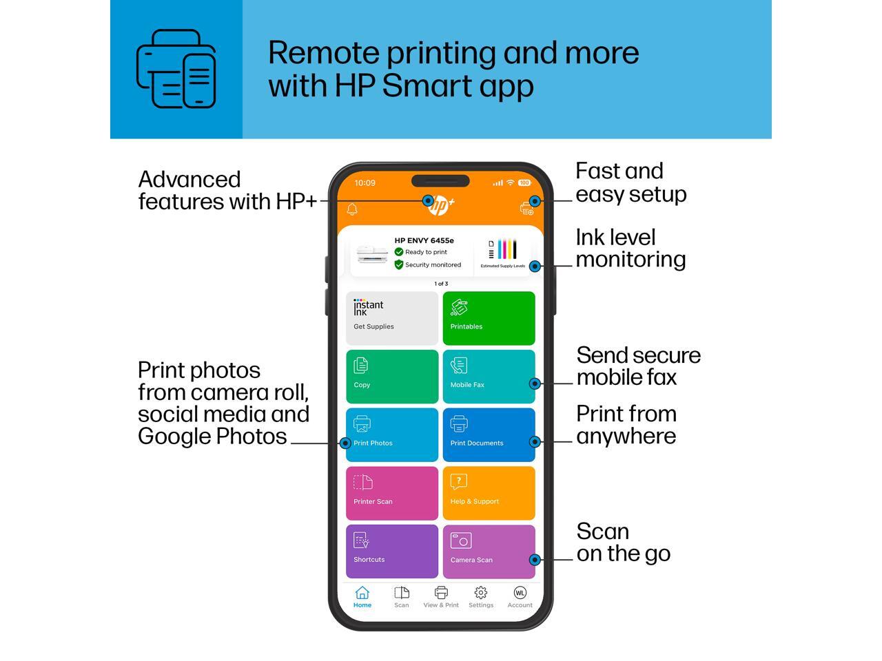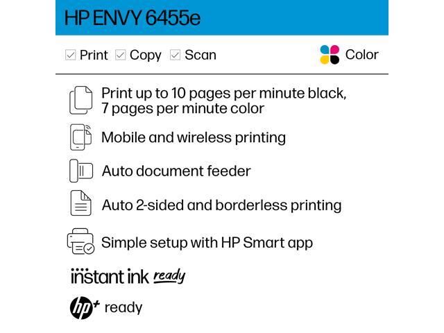 HP ENVY 6455e All-in-One Wireless Color Printer, with Bonus 3 Months Free Instant Ink with HP+ (223R1A)