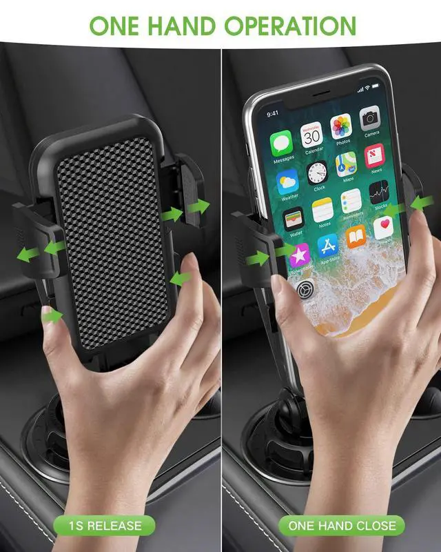 Expandable design makes the cup holder phone mount fit kinds of cup holder shapes, such as round cup holders, square cup holders