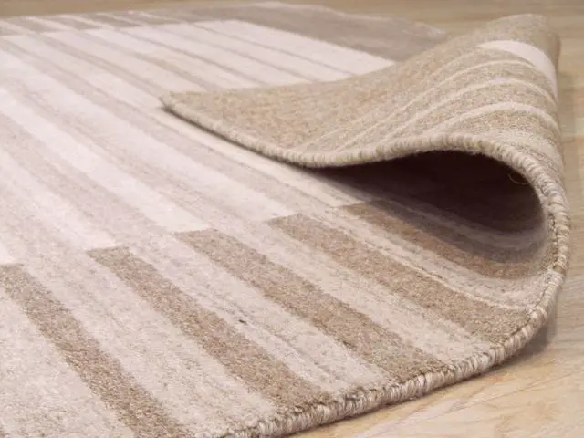 Ideal for contemporary living rooms bedrooms or any space where a touch of urban sophistication is desired this rug can serve as a chic centerpiece. The neutral colors make it versatile and adaptable to different color schemes and furniture styles while the handmade quality adds a touch of craftsmanship to your decor.