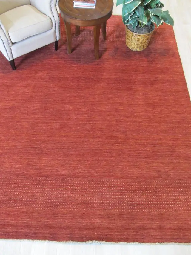 The Handmade Wool Red Transitional Solid Lori Baft Rug is a meticulously crafted floor covering that combines traditional handcrafting techniques with a transitional design aesthetic. Crafted from high-quality wool the rug provides a luxurious and durable texture underfoot.