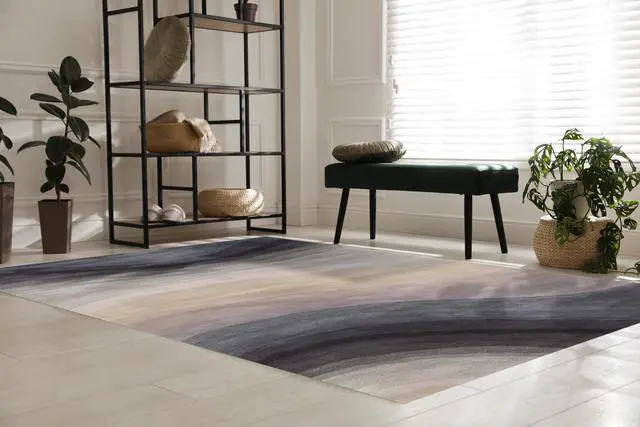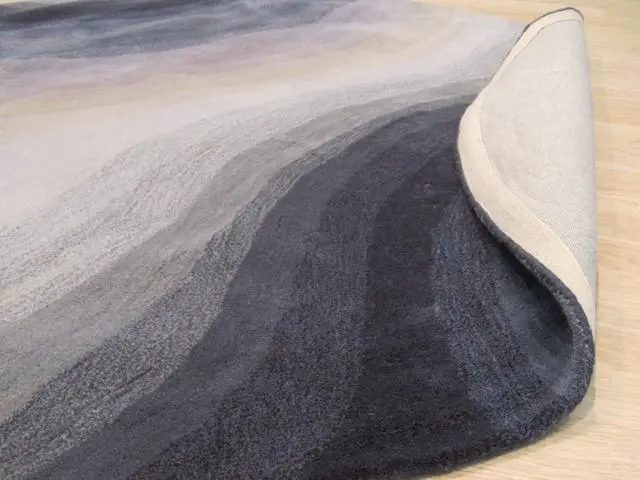 The Desert Wave Hand-Tufted Wool Rug features a mesmerizing abstract design with flowing wave patterns in soothing blue and neutral tones adding a serene touch of contemporary art to any room. Hand-tufted in India from high-quality wool this rug combines artistic elegance with traditional craftsmanship making it a stylish and luxurious addition to your home decor. Its rich colors and intricate pattern create an inviting and tranquil atmosphere perfect for living rooms bedrooms or dining areas. Rug colors may vary slightly according to your device and the lighting in your space.