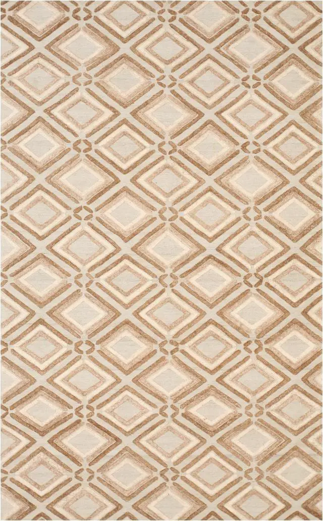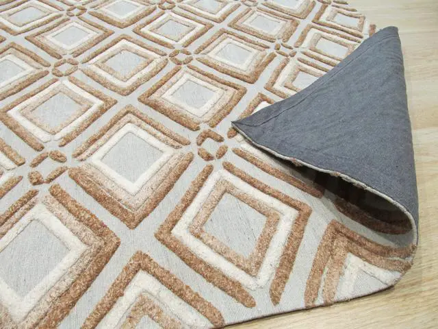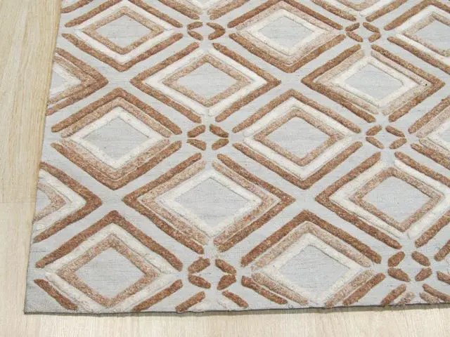 The handmade nature of the rug emphasizes its uniqueness showcasing the craftsmanship and attention to detail of the artisan. The brown color adds a touch of earthy warmth making it suitable for various interior styles. The contemporary geometric Raga pattern brings a sense of movement and visual interest creating a captivating focal point.