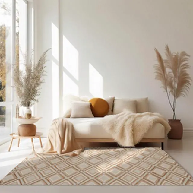 Artisanally handmade with meticulous care this rug features high-quality wool providing a plush and comfortable texture underfoot. The brown color serves as a warm and versatile backdrop creating a sense of coziness and adaptability in the space. The contemporary geometric Raga pattern characterized by intricate shapes and lines adds a visually dynamic and modern touch making it a stylish addition to any room.