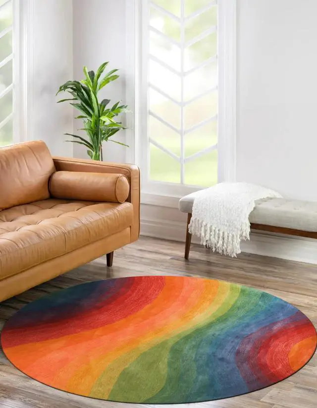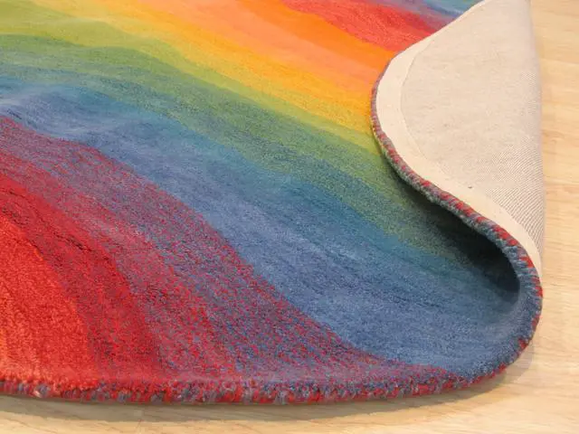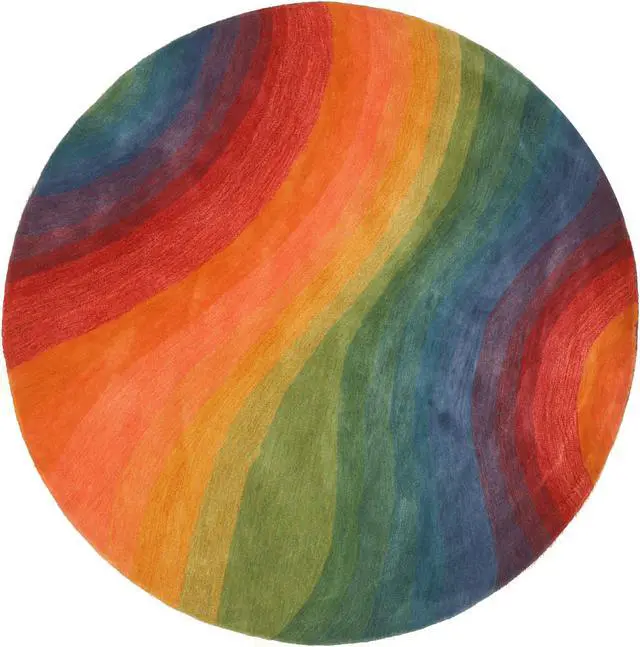The Rainbow Wave Hand-Tufted Wool Rug features a vibrant and dynamic wave pattern in a spectrum of colors adding a bold touch of contemporary art to any room. Hand-tufted in India from high-quality wool this rug combines striking design with traditional craftsmanship making it a stylish and luxurious addition to your home decor. Its rich colors and flowing pattern create an energetic and inviting atmosphere perfect for living rooms bedrooms or playrooms. Rug colors may vary slightly according to your device and the lighting in your space.