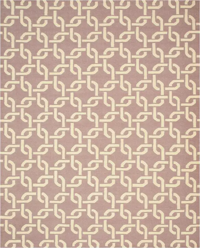 The Handwoven Wool Purple Transitional Geometric Links Dhurrie Rug is a visually striking and artistically crafted piece that seamlessly blends transitional design with the traditional craftsmanship of a dhurrie rug. Here's a description to capture its essence: