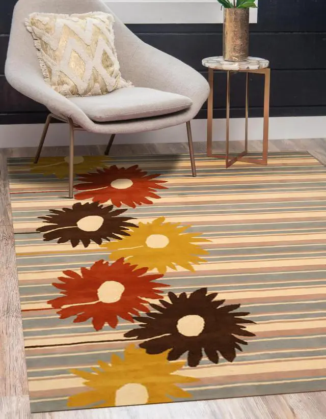 Hand-Tufted Wool Blue Transitional Floral Niki Rug. Hand tufted quality. 100% wool pile. Elegant style Ideal for decorating. This rug will last you for many years to come under everyday usage and foot traffic. Wool is a stain resistance material by it's nature and is very easy to clean.. Tufted rugs are popular for their durability softness and affordability. They are easy to clean and maintain making them a practical choice for high-traffic areas such as living rooms hallways and bedrooms. Additionally tufted rugs can be found in various sizes and shapes including rectangular round and square making them versatile and adaptable to any space..