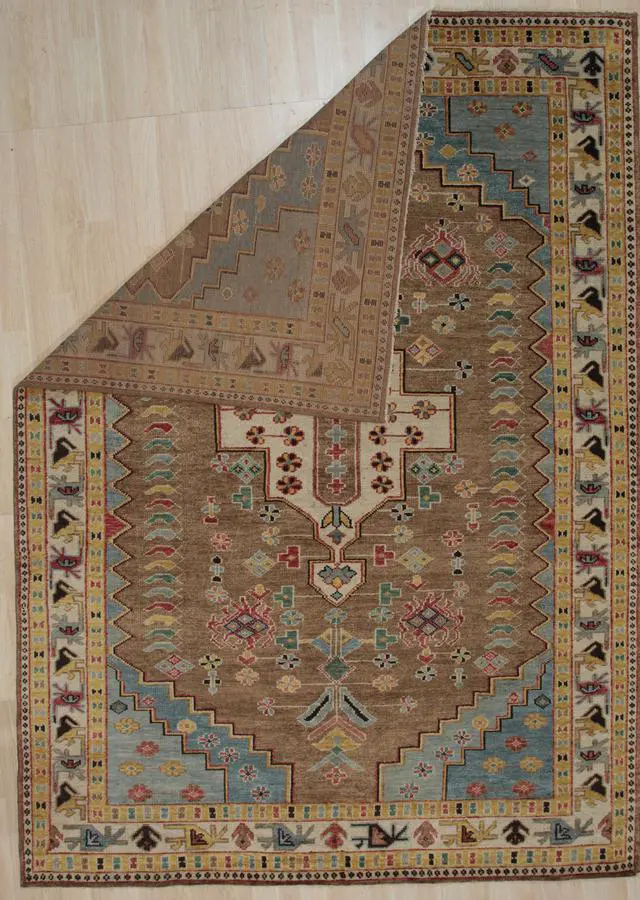 Hand Knotted Wool Brown Traditional Medallion Traditional Knot Rug. Add some warmth to your floors with this stunning hand spuned wool area rug. Place it in your living room to bring some light under heavy furniture. KEY_TAB Taking three or four months to complete this rug was handcrafted by skilled makers using a traditional hand-knotting technique a trade that’s been passed down and preserved for generations.. KEY_TAB Handmade in India from 100% wool with a 0.5 inch pile this rug is great in spaces with heavy foot traffic thanks to its short stature. Hand knotted rug adds style and warmth to a space. This design is centered around a Persian–inspired ornamental medallion and has a certain global appeal. This rug will last you for many years to come under everyday usage and foot traffic. Wool is a stain resistance material by it's nature and is very easy to clean..