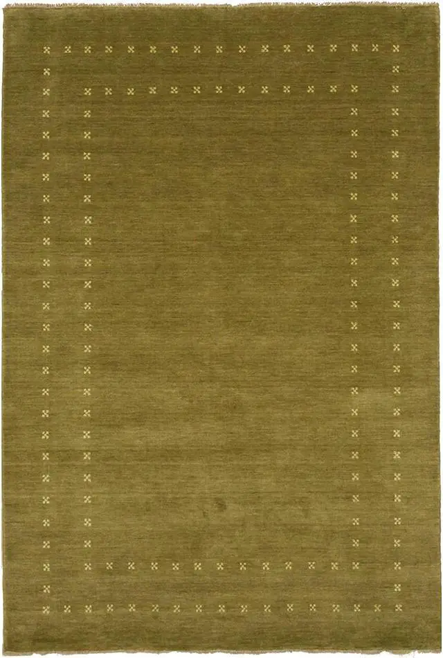 Elevate your décor with the simple elegance of this handmade wool rug. A minimalist border frames this solid rug to create a unique style.. Handmade craftsmanship ensures strength and durability to withstand high-traffic areas. Plush handspun wool quality. This rug features a pattern and weaving style inspired by the lori baft rugs known for tribal patterns. Easy to decorate with solid pattern.