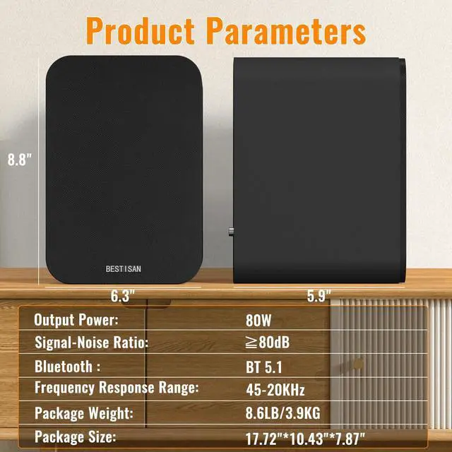 Magnet Woofer and Silk TweeterThe bluetooth bookshelf speakers has 4-inch wide-caliber woofer, which has high sensitivity, large dynamic range, smooth frequency response, deep diving at low frequencies, and smooth and round, calm and powerful without muffling. The silk dome tweeter captures more bass detail with clearer high-frequency effects, and the dual diaphragms allow sound to travel farther.