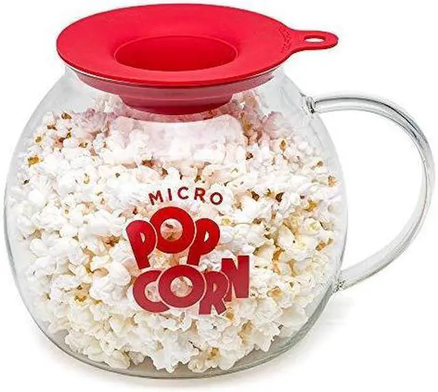 Now you can make popcorn your way, and control the fat content by choosing whether or not to use oil or butter while popping your corn. The Kitchen Extras 3-quart MicroPop Microwave Popcorn Popper doesn't require oil, added fat or artificial flavorings to make delicious popcorn in just 3 minutes! This borosilicate glass popcorn popper makes popping corn in the microwave easy and healthy, and is a superior alternative to buying expensive bags of microwave popcorn. The silicone lid is multifunctional - used for measuring, preventing popcorn from spilling over, and holding butter for melting (optional). Recipes for flavored popcorn are included.Features:3-quart capacityHeat-resistant borosilicate (laboratory glass)No oil neededEasy measure silicone lid melts butterDishwasher safe