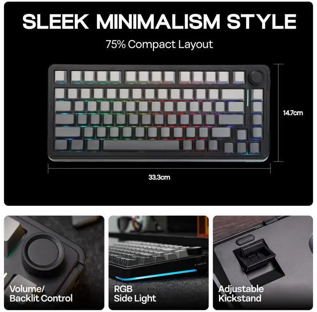 EPOMAKER EA75 Creamy Gaming Keyboard with Ambience RGB Side Lights