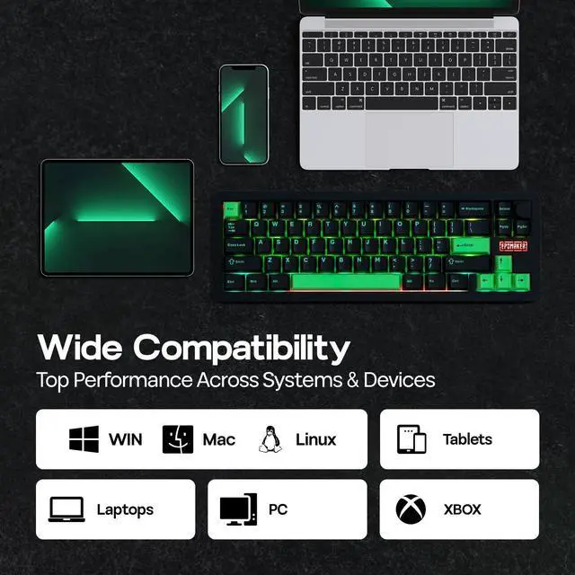 - Pair to New Device: 1). Toggle mode switch to BT or 2.4G. 2) 2). Pressing FN+Q/W/E or FN+R until the flash quicken from slow to rapid. 3). Connect on PC or plug dongle to PC.