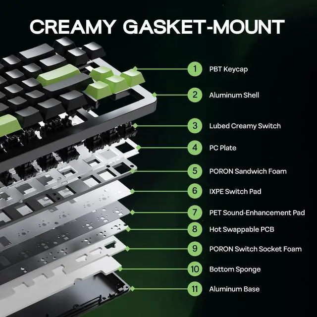 | Gasket, Side/LOGO/Backlit | Quick Release; For Controllers | Creamy Sound; 80% Layout | Creamy Sound; TKL Layout | Ultra Soft Flex Cut; Big 0 Key |