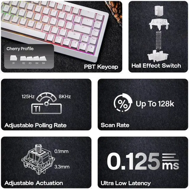 • 8,000 Hz Polling and 128,000 Scan Rate: Level up your gaming performance with smoother, more precise control, with the HE68 Lite magnetic gaming keyboard. Experience near-instantaneous key registration of 8khz polling rate, translating your commands into on-screen actions with unparalleled speed in 0.125 millisecond. Outmaneuver opponents and execute complex strategies flawlessly, with the super high 128khz per-key scan rate where even rapid-fire sequences are accurately captured.