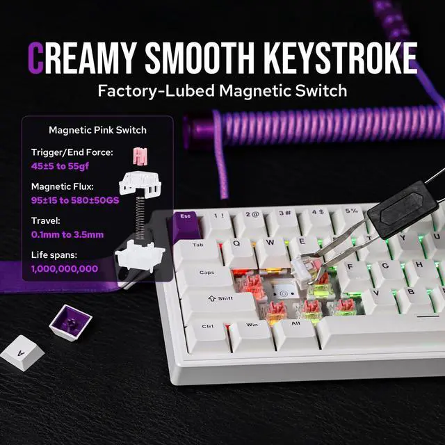 - EP Magnetic Pink Switch: Lubed Linear, Force: 45-55gf, Travel: Adjustable.