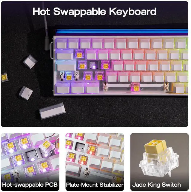 The HERO 68HE keyboard features a Tray Mount with five layers of noise canceling padding (2?3?4?6?7), dramatically reducing cavity sound and vibration, and providing a solid, rock-solid feel. Whether you're in the middle of a game or a long day of typing, you'll get precise feedback on every hit.