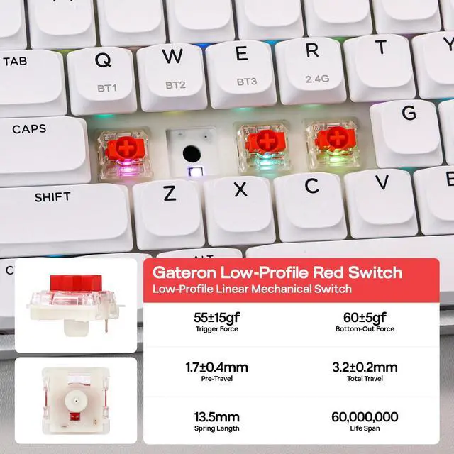 RGB Backlight: Per-Key South-Facing LEDs. Still and Dynamic, Singular Color and RGB.