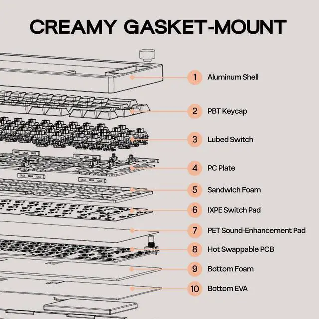 Sound Dampening: 5 layers: Sandwich foam, IXPE switch film, PET sound pad, sound-absorbing foam, and EVA case foam