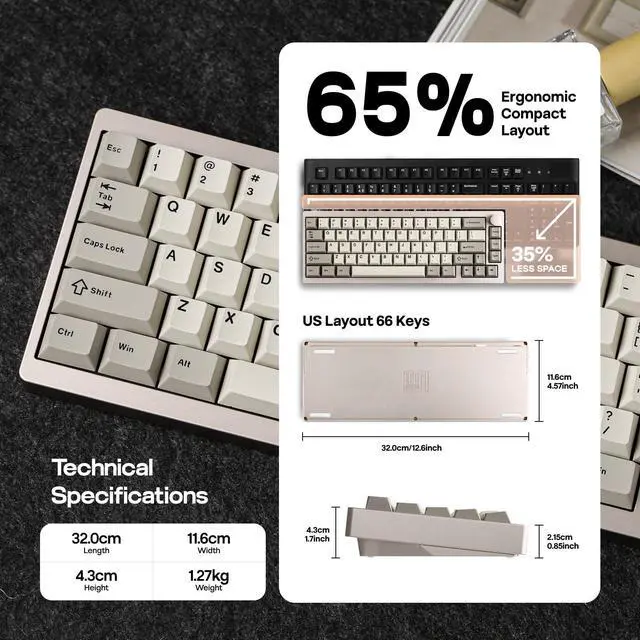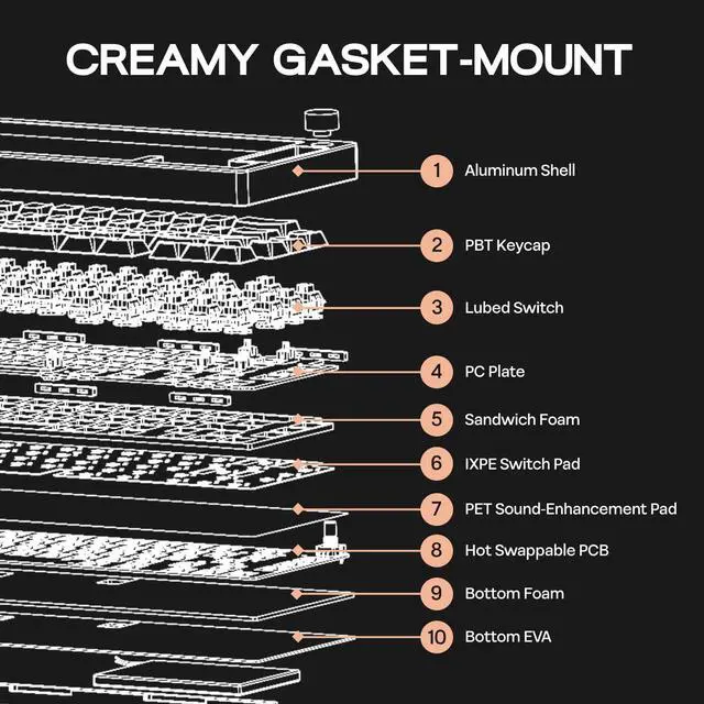 Sound Dampening: 5 layers: Sandwich foam, IXPE switch film, PET sound pad, sound-absorbing foam, and EVA case foam