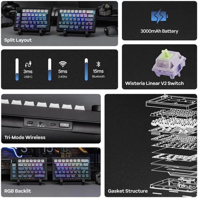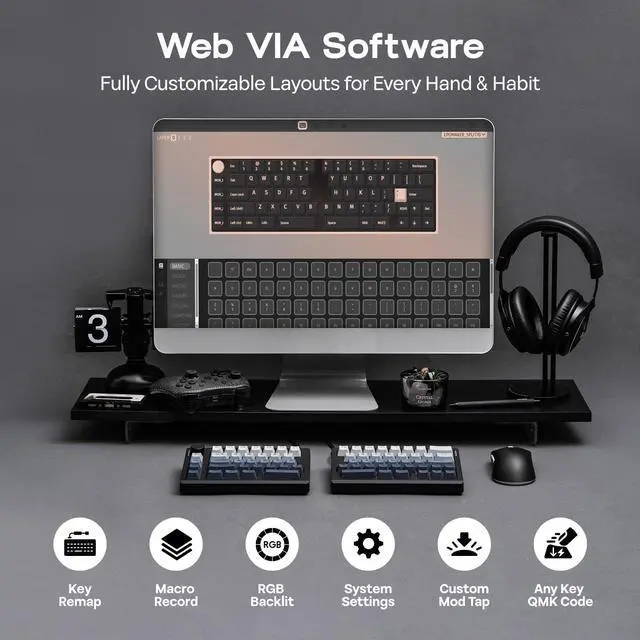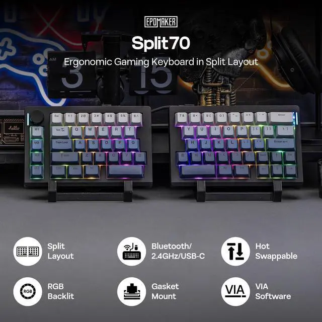 Tired of your dull office setup? Add color to your workspace with the Split70 keyboard—it has dozens of stunning light effects to bring your desk to life instantly. Via VIA’s intuitive interface, adjust brightness, speed, and color, save custom settings, and switch scenarios with one click, making every keystroke full of creative fun.