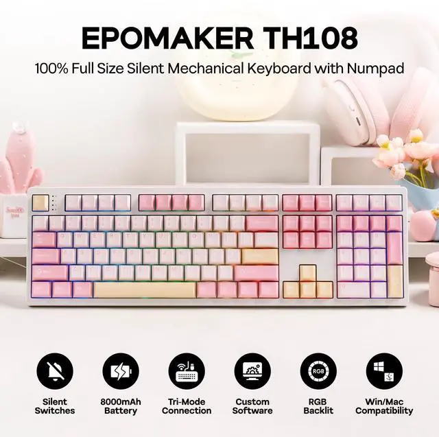 EPOMAKER TH108 Full Size 108 Keys Hot-Swap Mechanical Keyboard for Gaming/Office