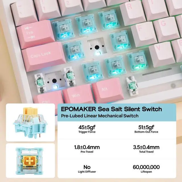 - Sea Salt Silent Switch: 5-pin Mechanical Linear Switch.